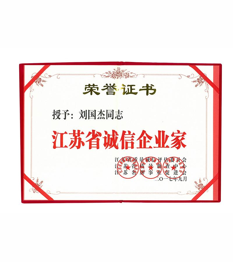 江蘇省誠(chéng)信企業(yè)家證書(shū)
